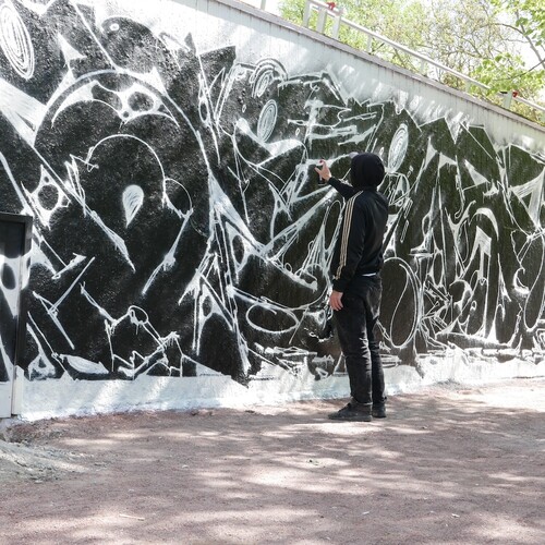 Anders Reventlov works with the idea of writing as drawing. He works specifically in black and white as a reference to writing and signature. In a digitalized world, where the individual action is reduced to a swipe or a algorithm, Anders is advocating for all of us to take our name and our own handwritten signature back and use it as a tool of personal resistance.