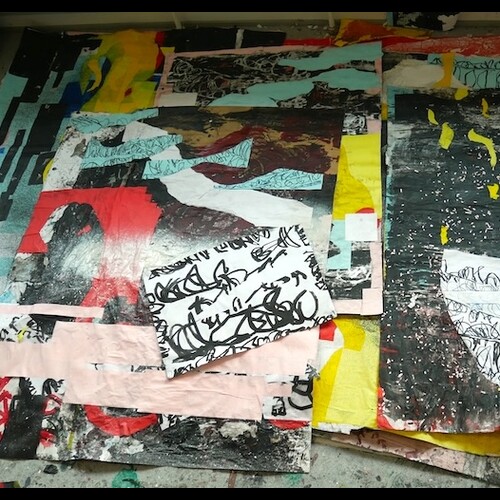 Where Niels grew up, no one spoke about the important things in life, only practicalities and what the neighbors were doing. This created an urge in him to create a language, through his art, for what was never put into words in his childhood. Niels works with his paintings in abstract movements, he never does any preparing before he starts painting, but rather creates through his intuitive actions either on paper or walls. His artistic universe is created when painting. Metaphorically Niels always paints on empty canvas or walls, as this is how he often feels until he starts creating - restless and empty. Something wants out! Niels creates no contact between his brain and his hand while making art, as this allows for something deep within to emerge. In the process of creating Niels’ actions become a state of being where his actions speak for themselves as something larger takes over. He describes it as a space of emptiness he taps into, nothing can exist here but dead empty space. Niels’ art is a way for him to escape the prison of chatter he grew up in. Every piece is a step closer to freedom, a form a therapy to live a life that is tolerable.