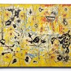 This work was made with used street posters and different mamagzine pages muti-layed and glued onto the canvas, then grinded and sanded.